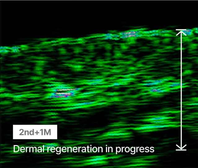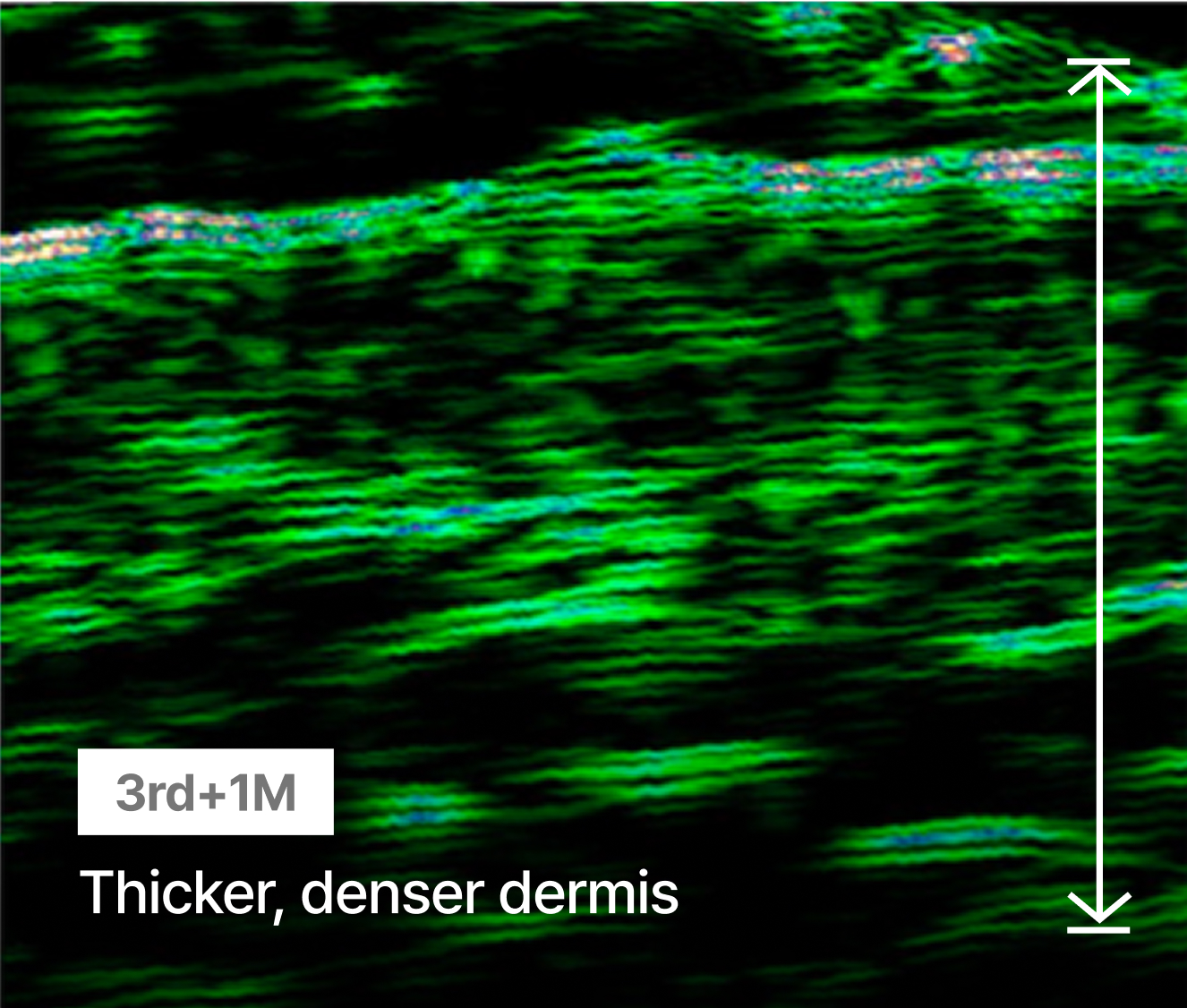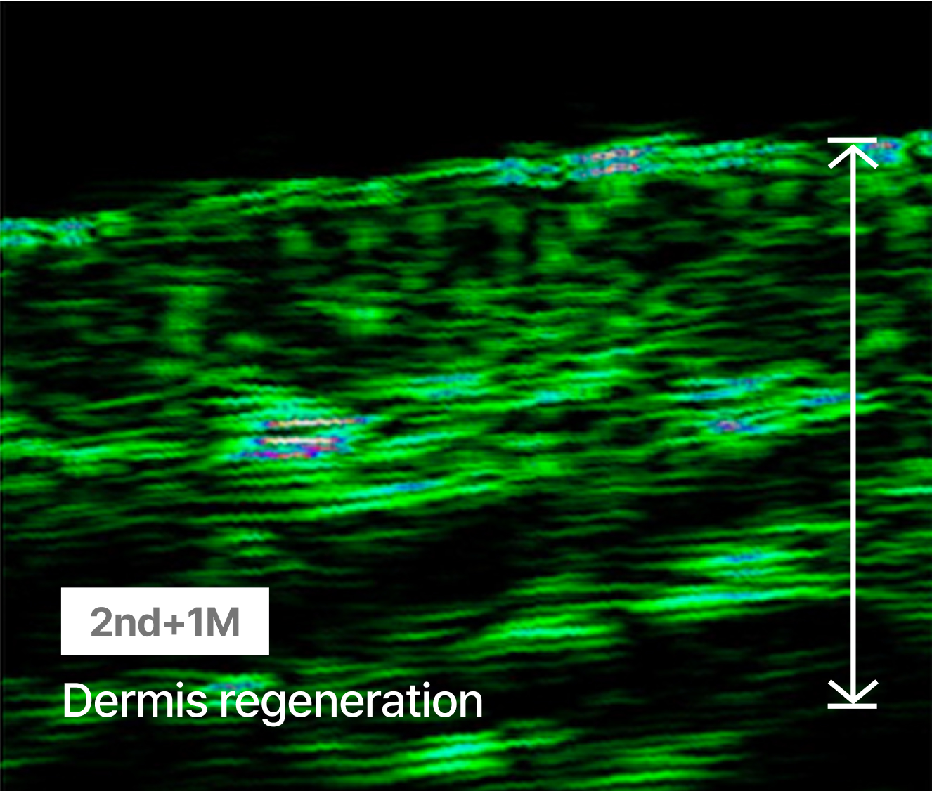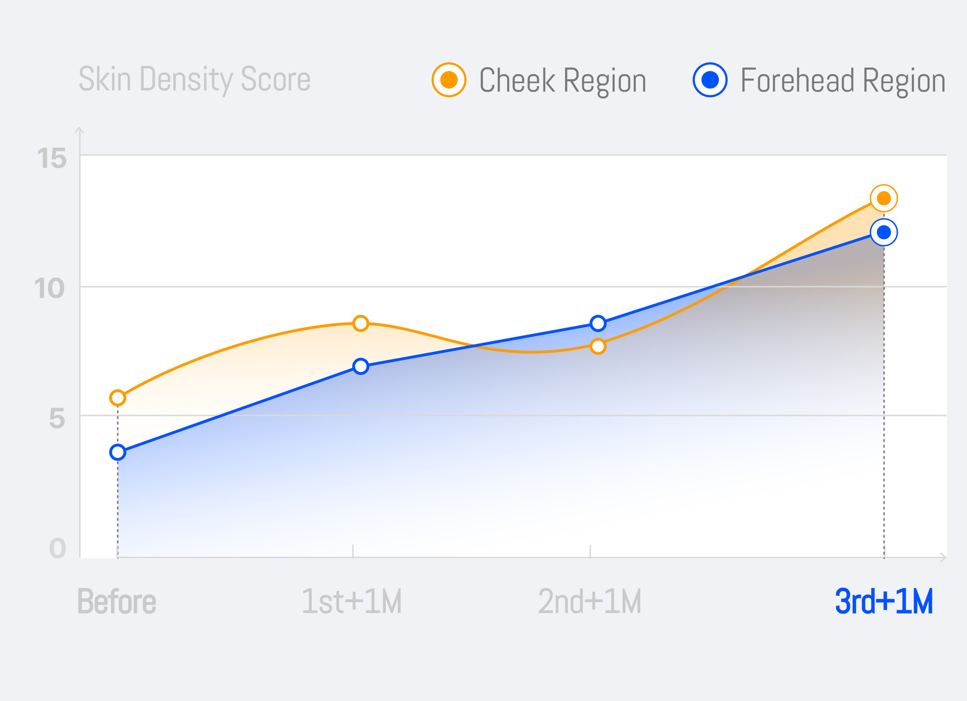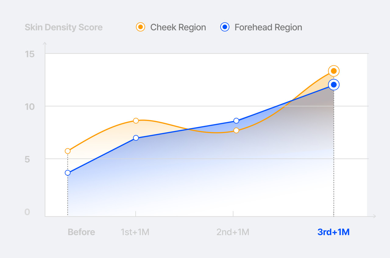 Over time, skin density and thickness gradually increased, collagen density and dermal structure strengthened, and overall skin elasticity improved