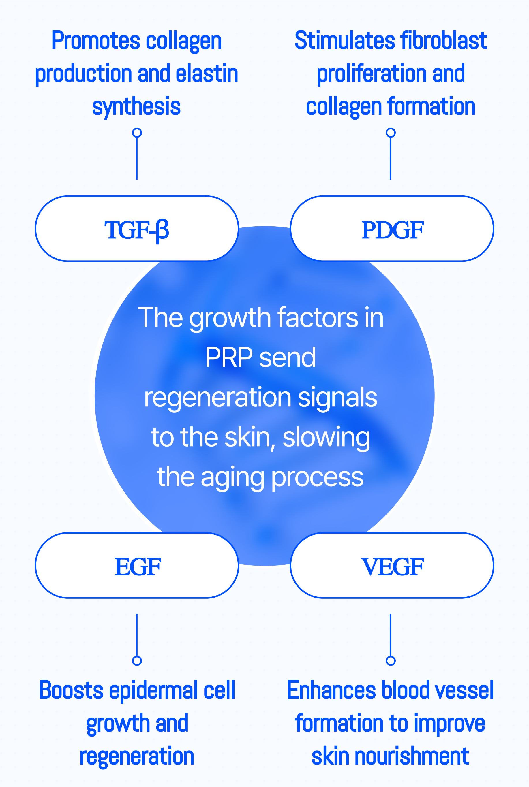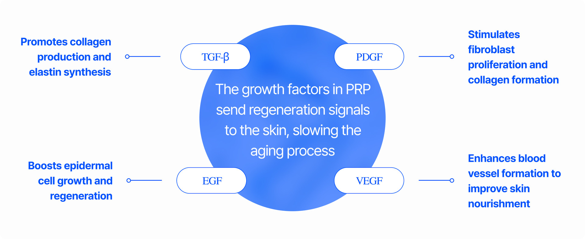 PRP fundamentally improves and restores multiple skin concerns such as elasticity, tone, and wrinkles