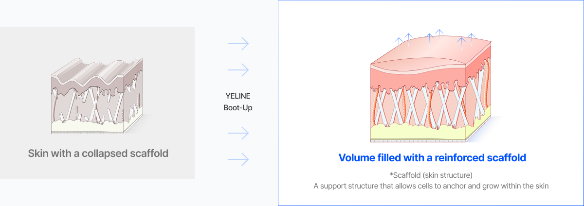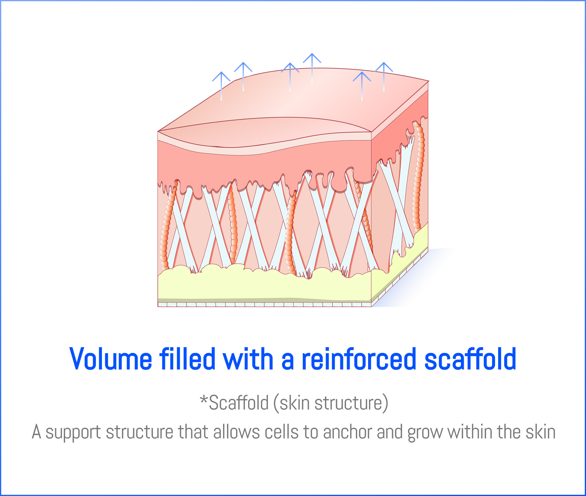 Unique Boot-Up Formulation Technique Stimulates collagen directly to fortify the scaffold layer