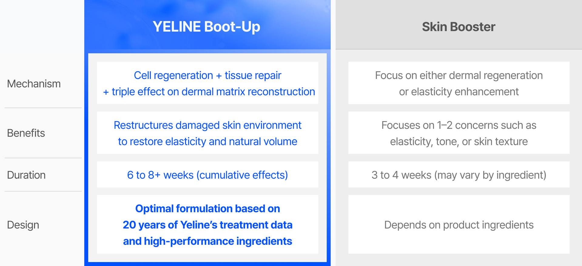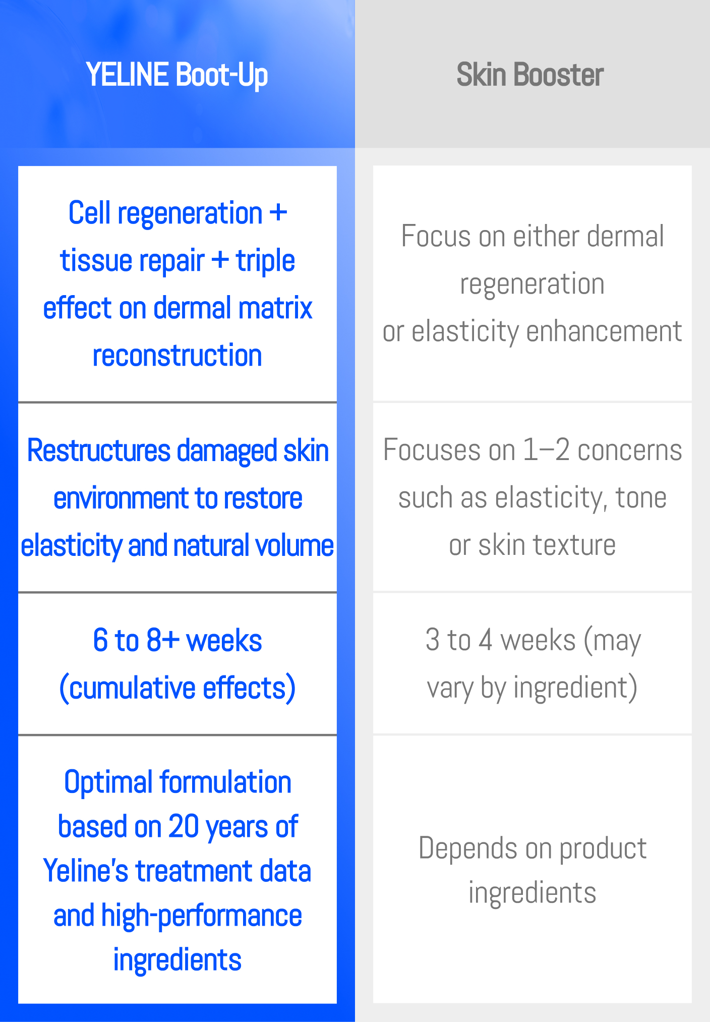 Ideal for those seeking deep structural improvement in volume and elasticity, this treatment shows high satisfaction. Yeline’s Boot-Up technique yields natural results that improve over time